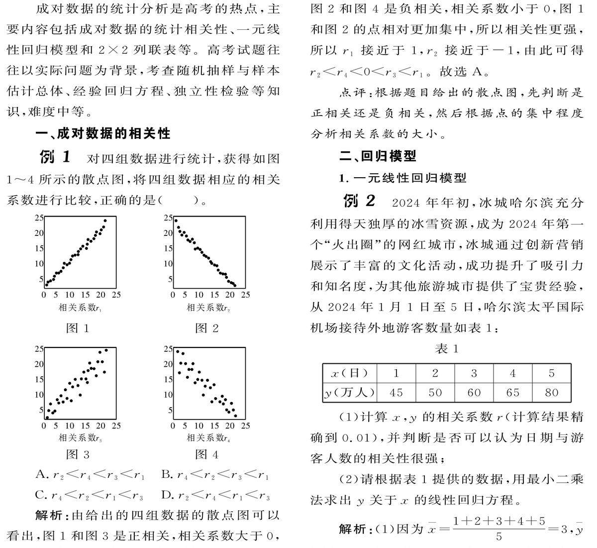 成对数据的统计分析是高考的热点,主要内容包括成对数据的统计相关性、一元线性回归模型和2×2列联表等。(剩余50字)