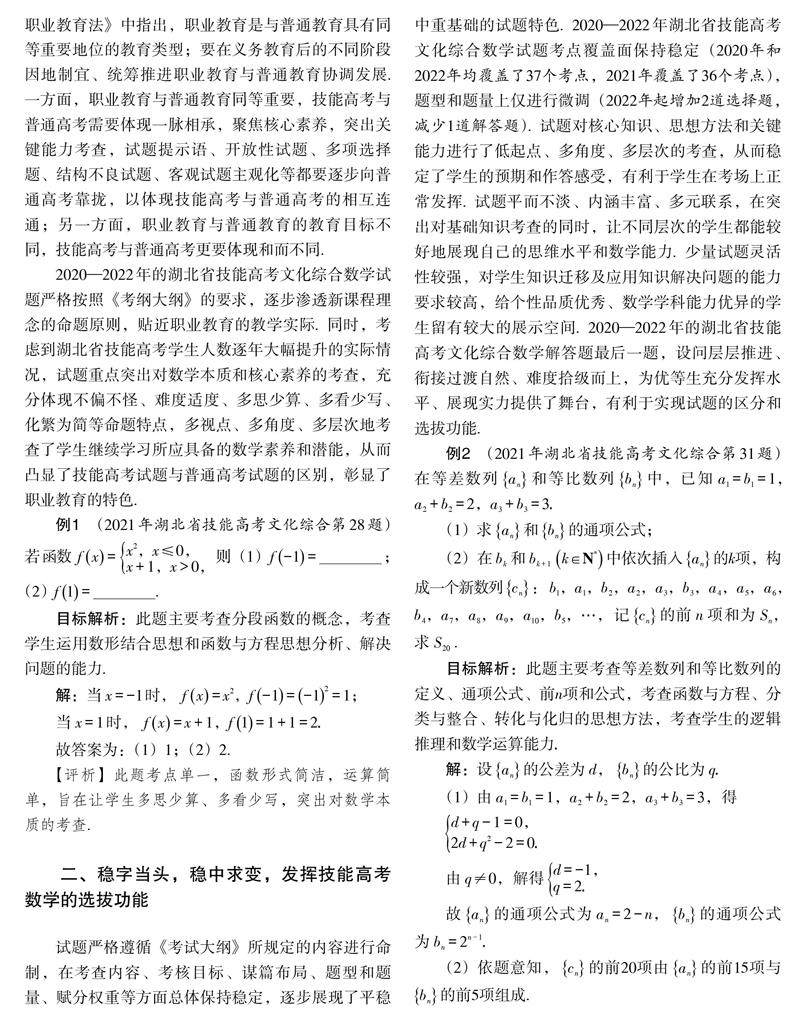 摘 要:职业教育与普通教育同等重要,技能高考与普通高考一脉相承. 2020—2022年湖北省技能高考文化综合数学试题准确定位,突出学科特点,考查数学本质,着力内容创新,凸显数学育人,发挥了选拔功能. 试题稳中求变,全面体现基础性和综合性,重点突破应用性和创新性,倡导理论联系实际,利用真实(剩余4894字)