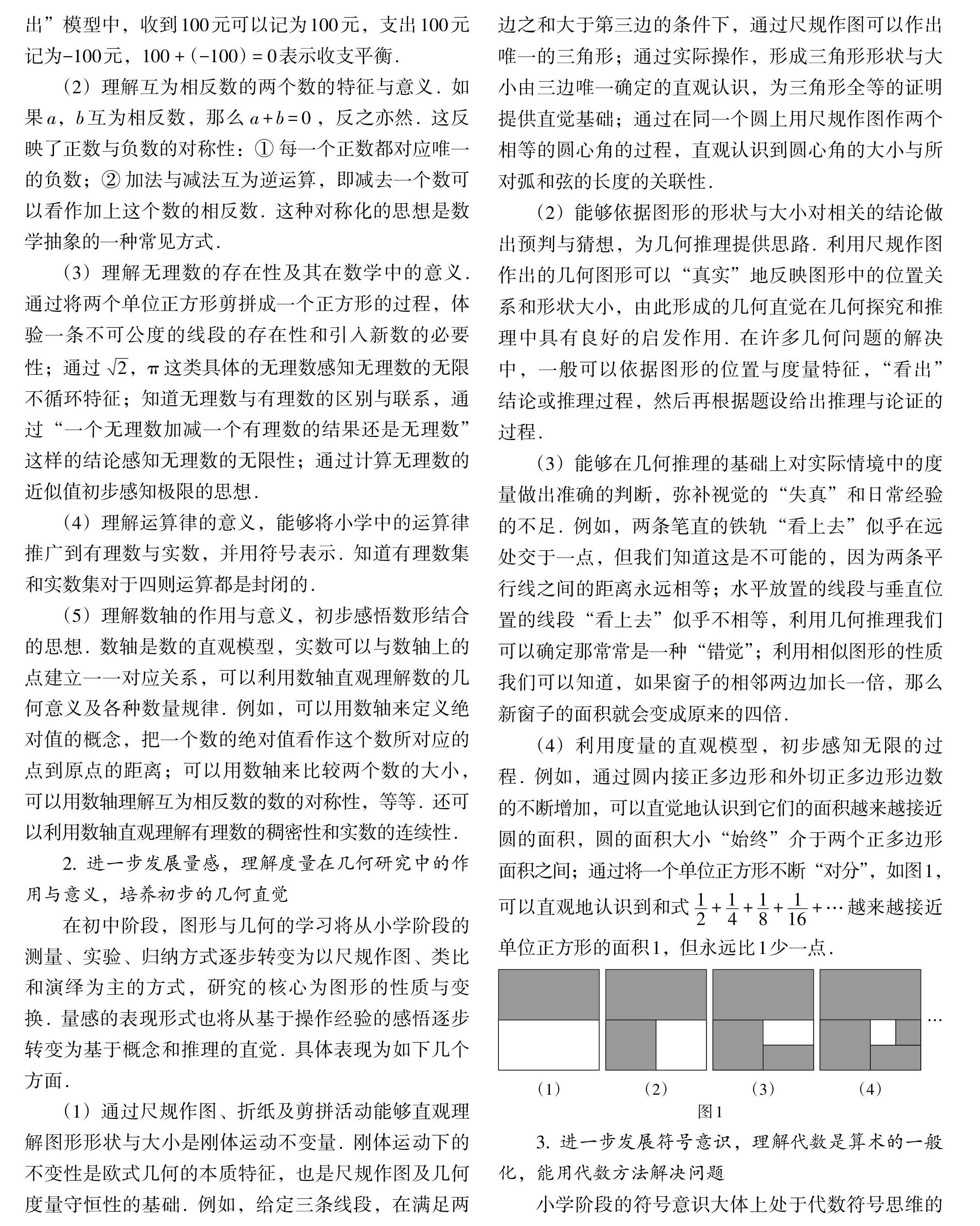 摘 要:抽象是数学的基本特征,也是数学的基本思想. 新颁发的《义务教育数学课程标准(2022年版)》把“抽象能力”作为数学核心素养在初中阶段的主要表现之一,并以小学阶段的数感、量感和符号意识为基础,以高中阶段的数学抽象为后继,明确了小学、初中、高中三个阶段的不同要求. 由于抽象能力是一种(剩余9794字)