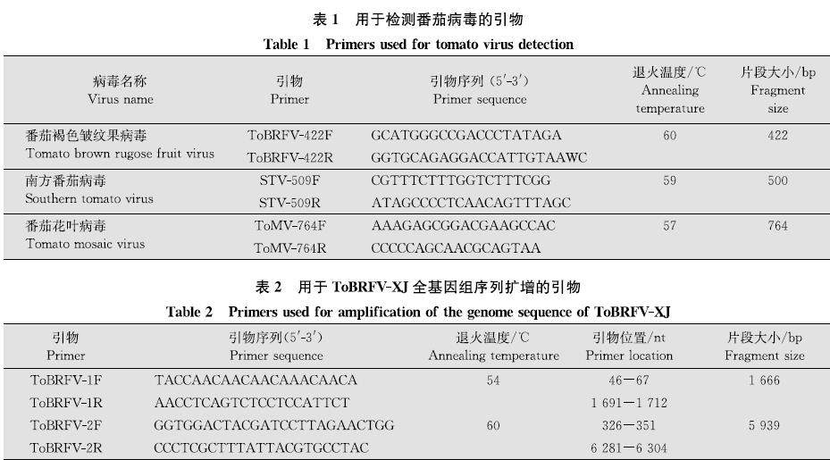 侵染番茄的番茄褐色皱纹果病毒新疆分离物的分子鉴定及基因组序列分析