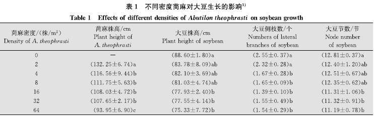 苘麻对大豆的危害及其经济阈值