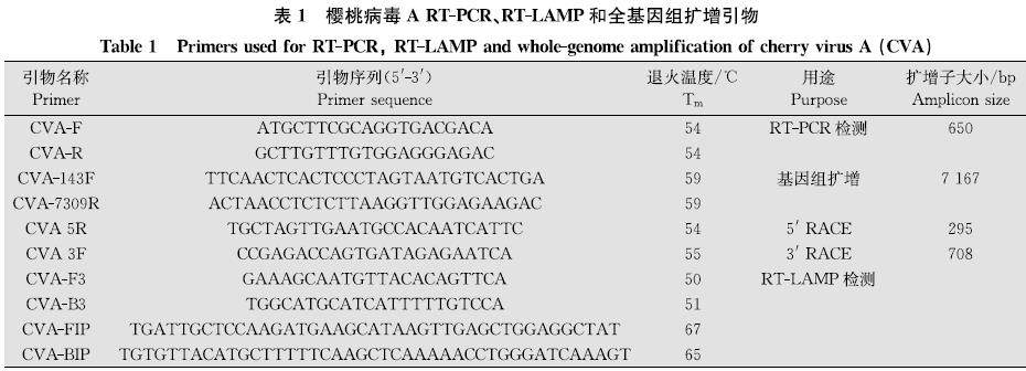 樱桃病毒A陕西分离物基因组扩增及RT LAMP检测体系的建立