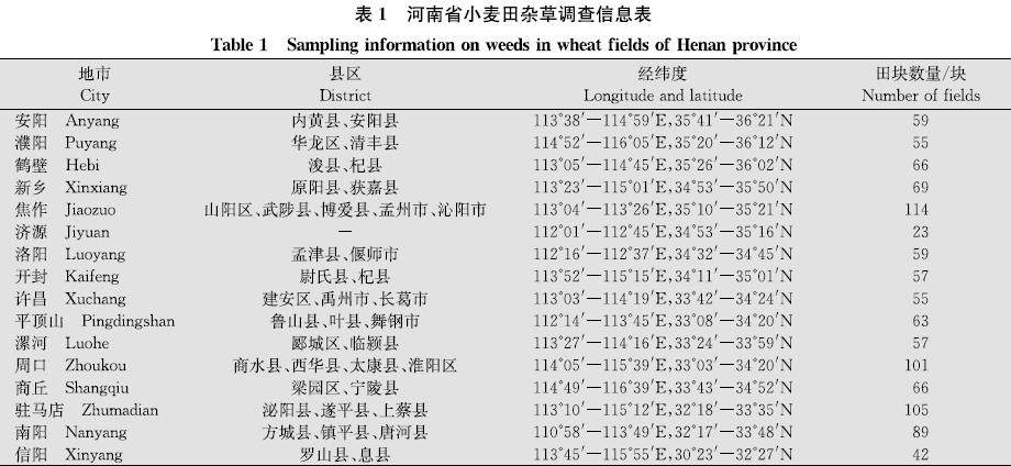 河南省小麦田主要杂草种类及发生情况