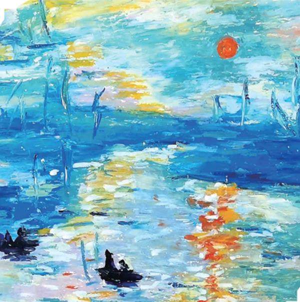 爸爸说等疫情结束了,我们就可以去海边啦。我看到了莫奈画的《海上日出》,心想:大海就是这样的吗?我临摹了一张大海,等夏天一定去要海边亲眼看一看。(剩余8字)