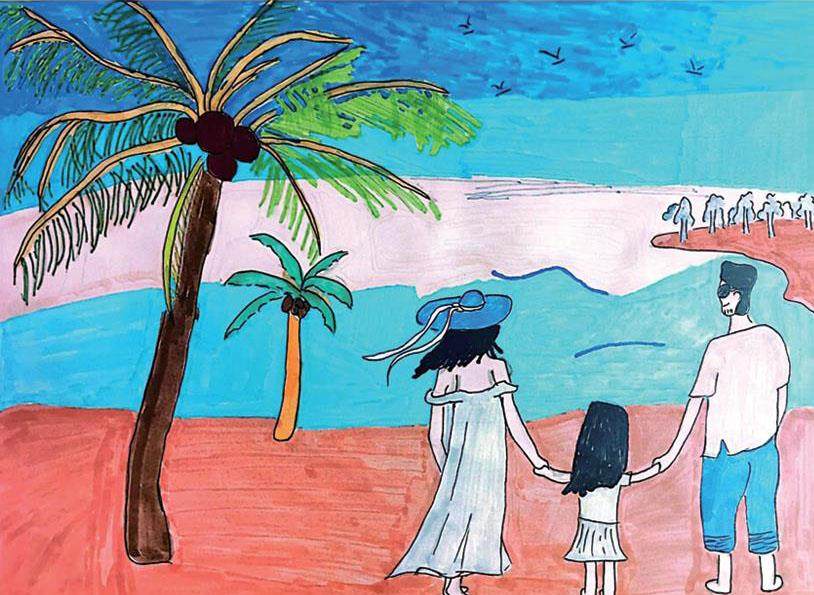 自从学习了《美丽的西沙群岛》,江梦祎就憧憬着美丽的海岛……