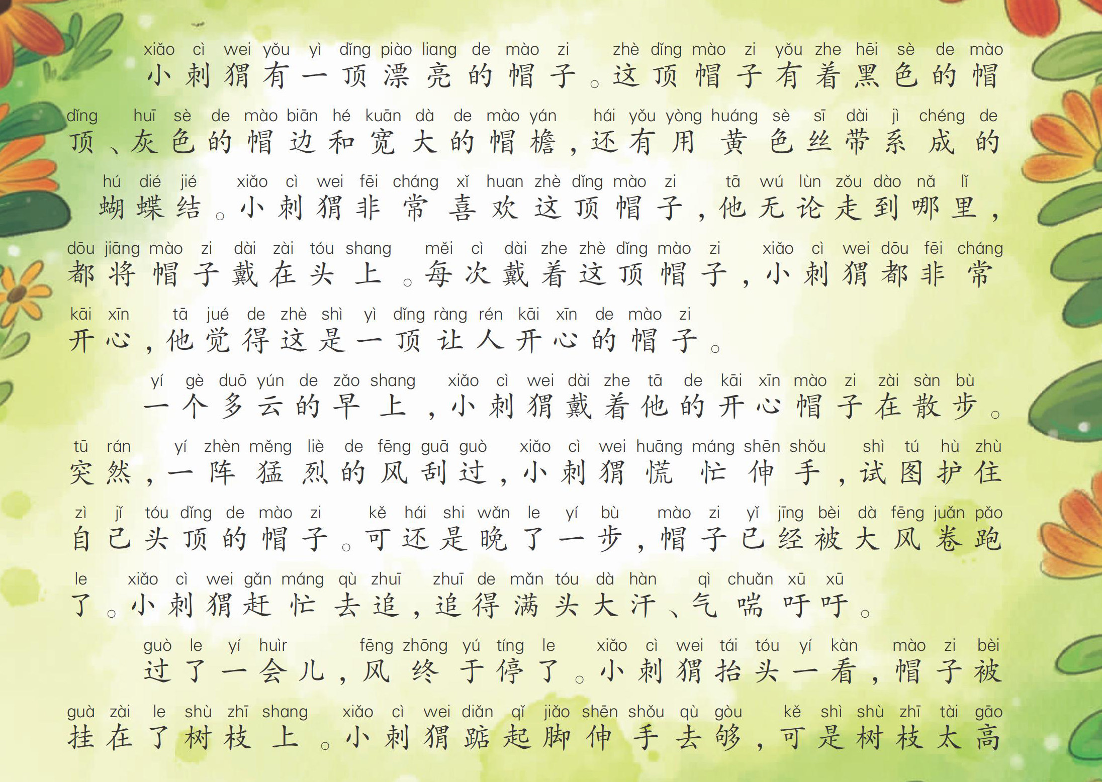 一个多云的早上,小刺猬戴着他的开心帽子在散步。突然,一阵猛烈的风刮过,小刺猬慌忙伸手,试图护住自己头顶的帽子。(剩余358字)