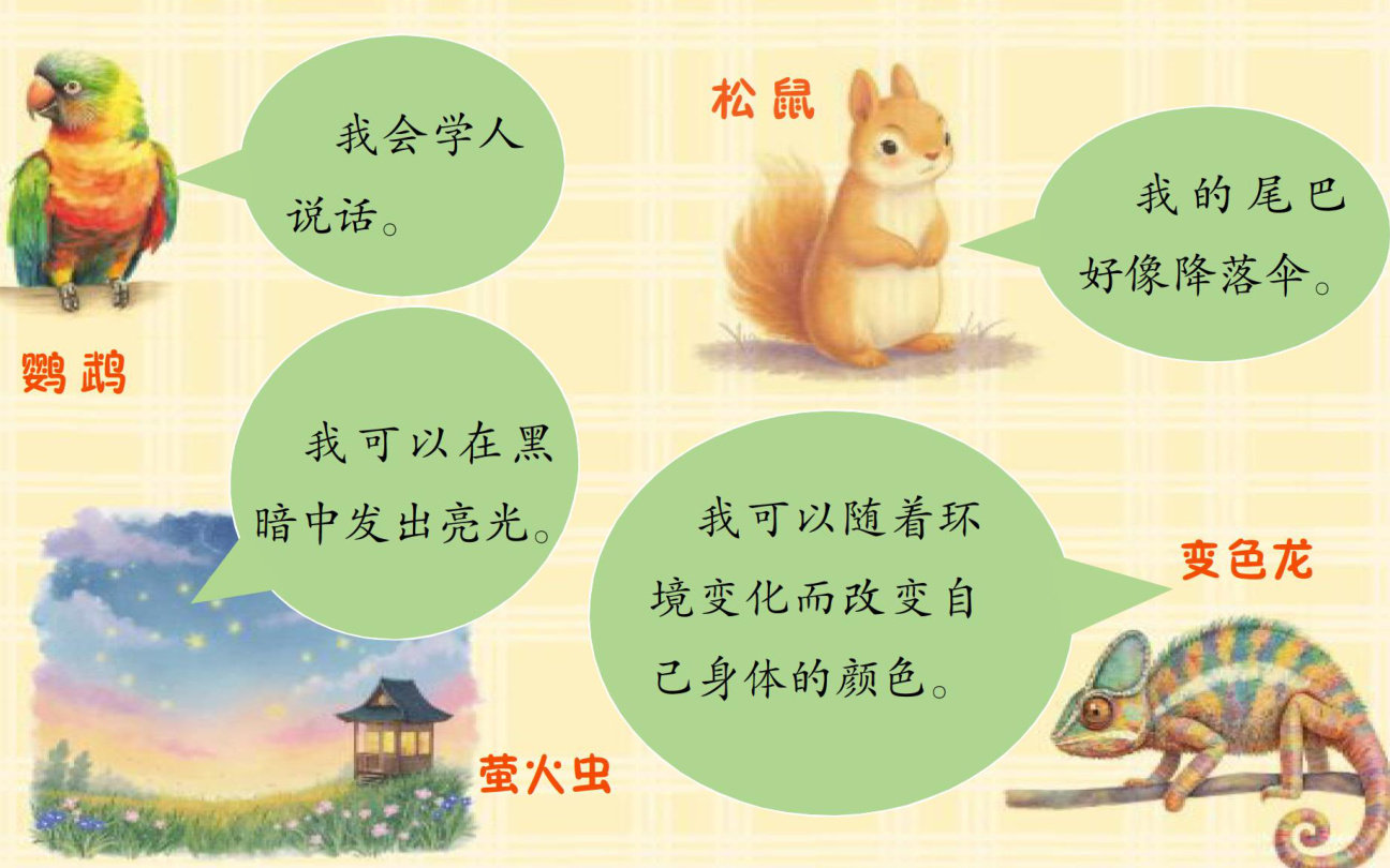 森林电视台要录制一档节目一《有趣的动物》,向动物们发起了海选。这不,动物们都在舞台上呢,让我们一起去看看都有谁,它们哪里有趣?