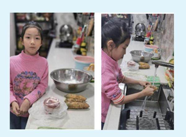 第二步,奶奶说:“我们要准备一块绿色面团和一块原色面团。”怎么做绿色面团呢?我小心地把菠菜切段,然后放入搅碎机,加一些水,搅拌2分钟后关机,过滤,接下来就可以用绿色的菜汁和面啦。(剩余430字)