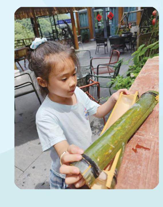 第一步,爸爸从山上砍了一根细竹,表皮青黄,还带着淡淡的竹香。爸爸用锯子把竹筒锯成两截。我用刷子,把竹筒里里外外洗干净备用。