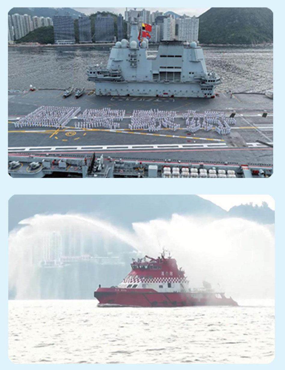 在香港回归祖国28周年之际,由中国人民解放军海军航空母舰山东舰,导弹驱逐舰延安舰、湛江舰及导弹护卫舰运城舰组成的航母编队,携舰载战斗机和陆战队员,于3日上午抵达香港特别行政区,开启为期5天的访问活动。