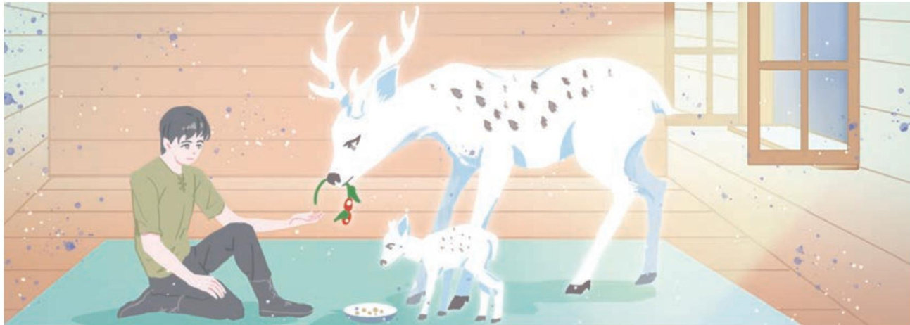 也许是长时间捕猎产生了幻觉,我摆摆头,正准备关上窗户。突然,一个东西“扑通”一声落在了窗台。那是一只小小的鹿,银色的皮毛上嵌进了几颗黑色的斑点,细而尖的两只耳朵轻轻扇动着,长矛般的鹿角铺上了淡淡的银色。(剩余3343字)