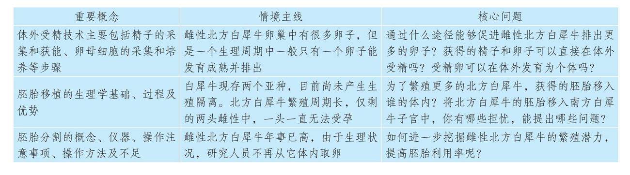 [摘要] 驱动真实性学习的主题式情境教学设计应当以真实情境诱发探究实践,以主题情境驱动持续的学习感悟。研究以高中生物学选择性必修三“胚胎工程”一节的主题式情境教学为例,紧扣真实性主题情境的创设、真实性问题线索的设计、真实性反馈评价的回归,以达成学生学习热情的激发、科学思维的拓展与社会责任的感悟。