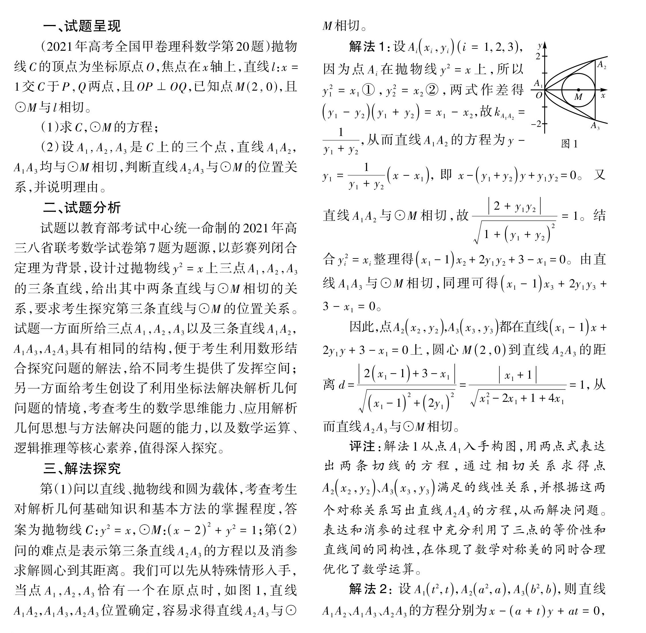 [关键词]2021年高考;全国甲卷;圆锥曲线;压轴题