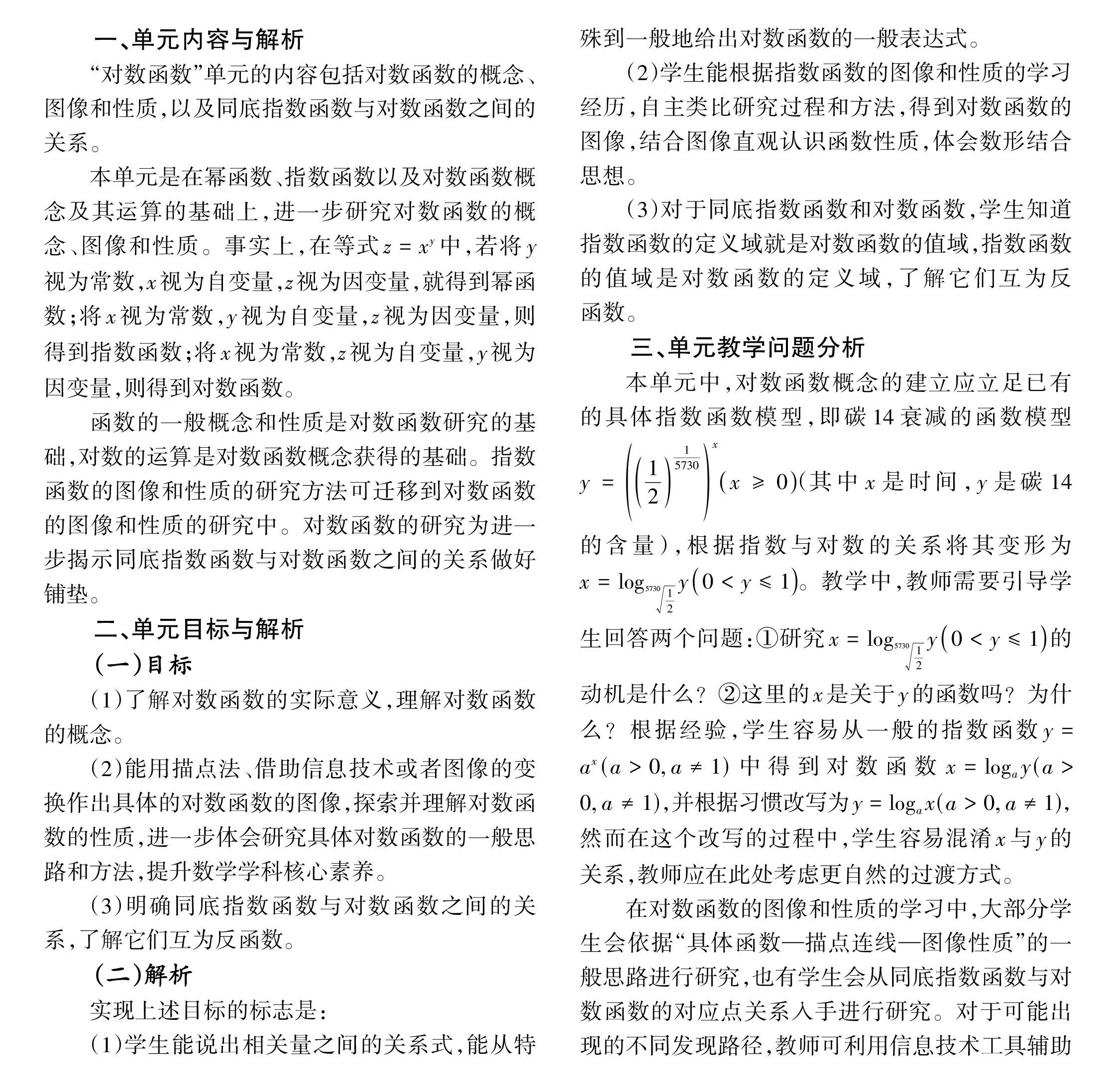 “对数函数”单元的内容包括对数函数的概念、图像和性质,以及同底指数函数与对数函数之间的关系。(剩余4806字)