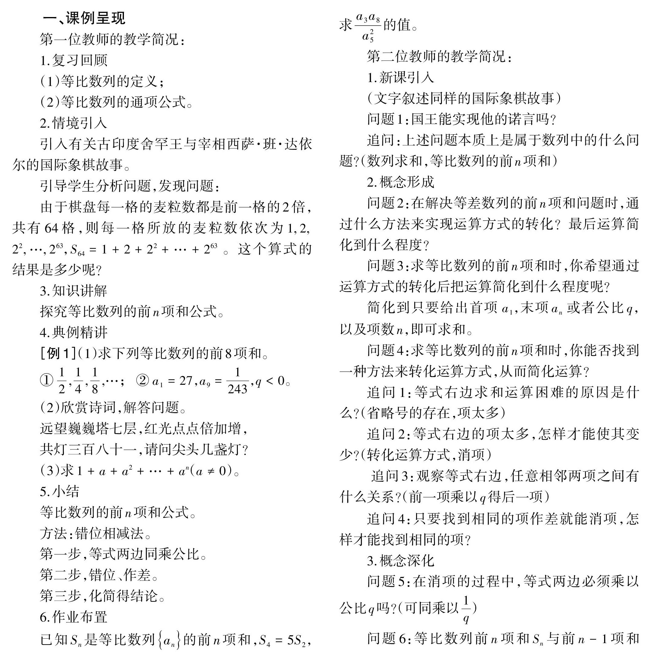 [关键词]同课异构;等比数列;前[n]项和