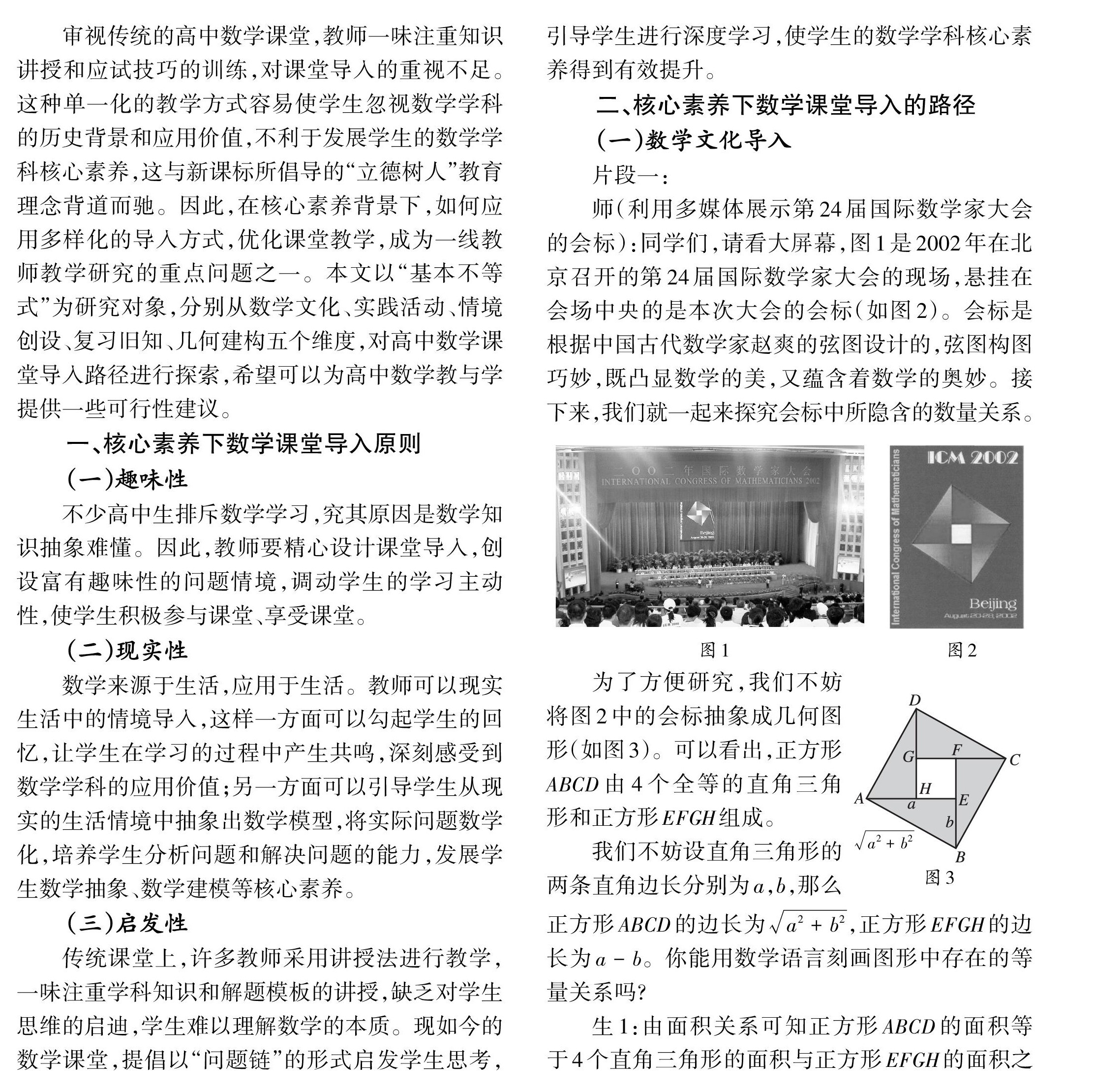 [关键词]课堂导入;核心素养;高中数学;基本不等式