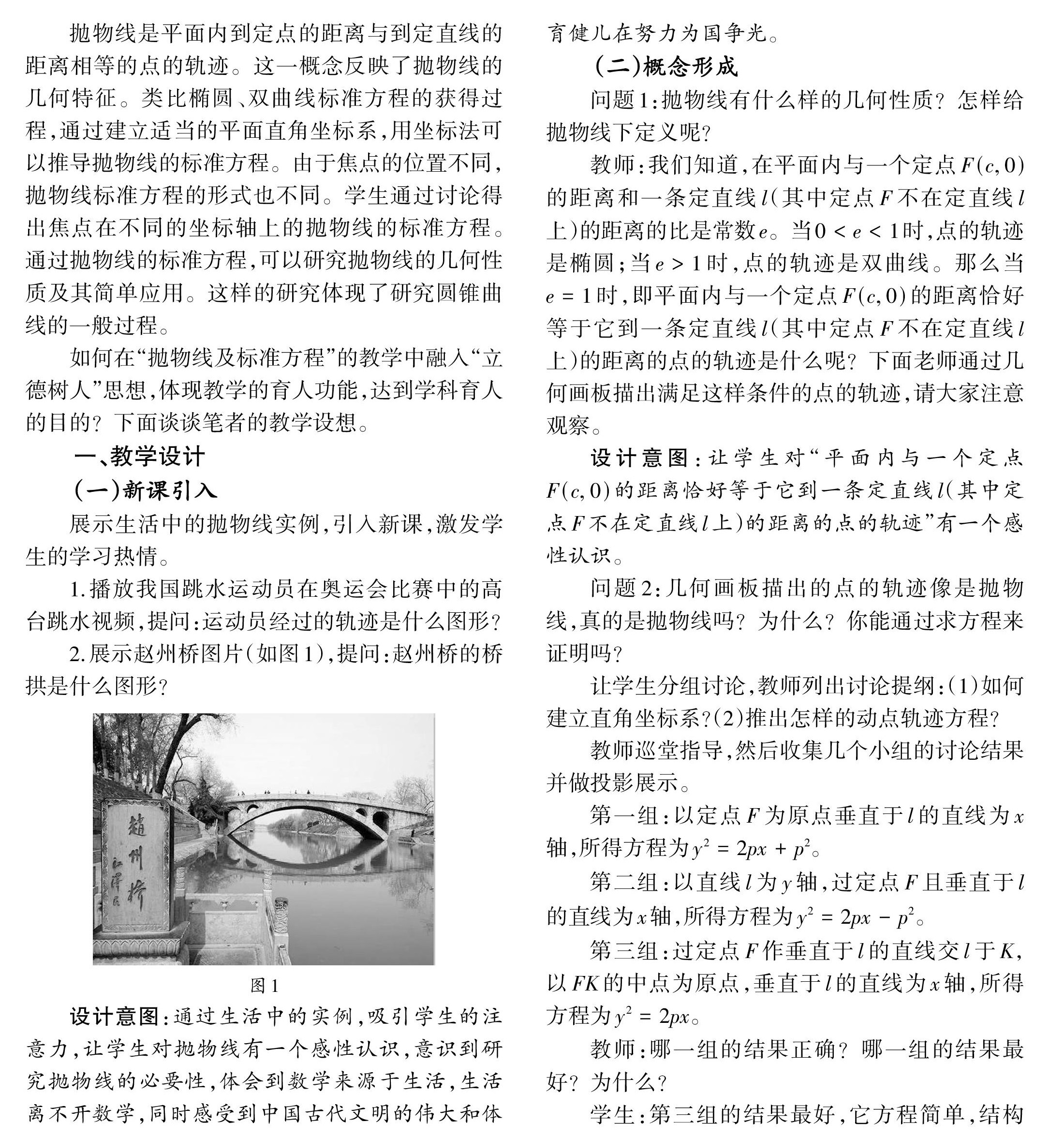 [关键词]学科育人;课例评析;抛物线;标准方程