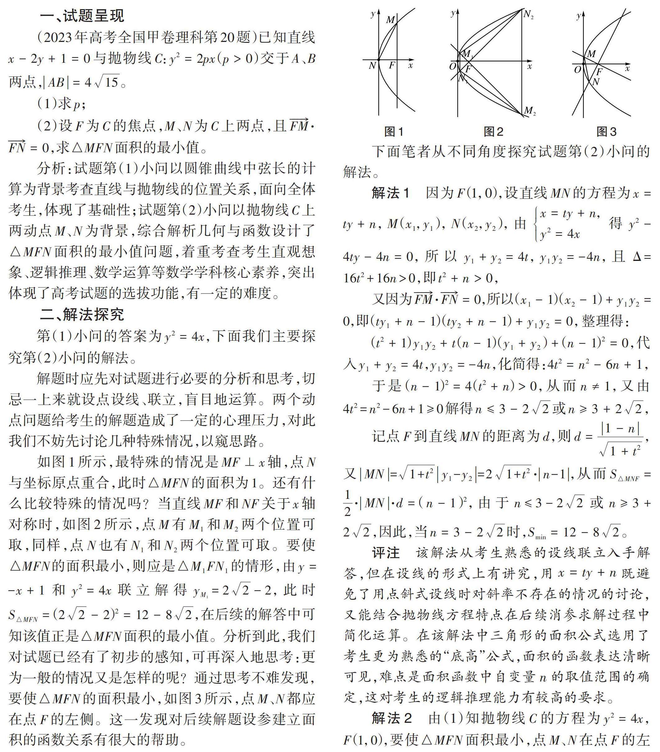 [关键词]2023年高考;全国甲卷;圆锥曲线;函数思想