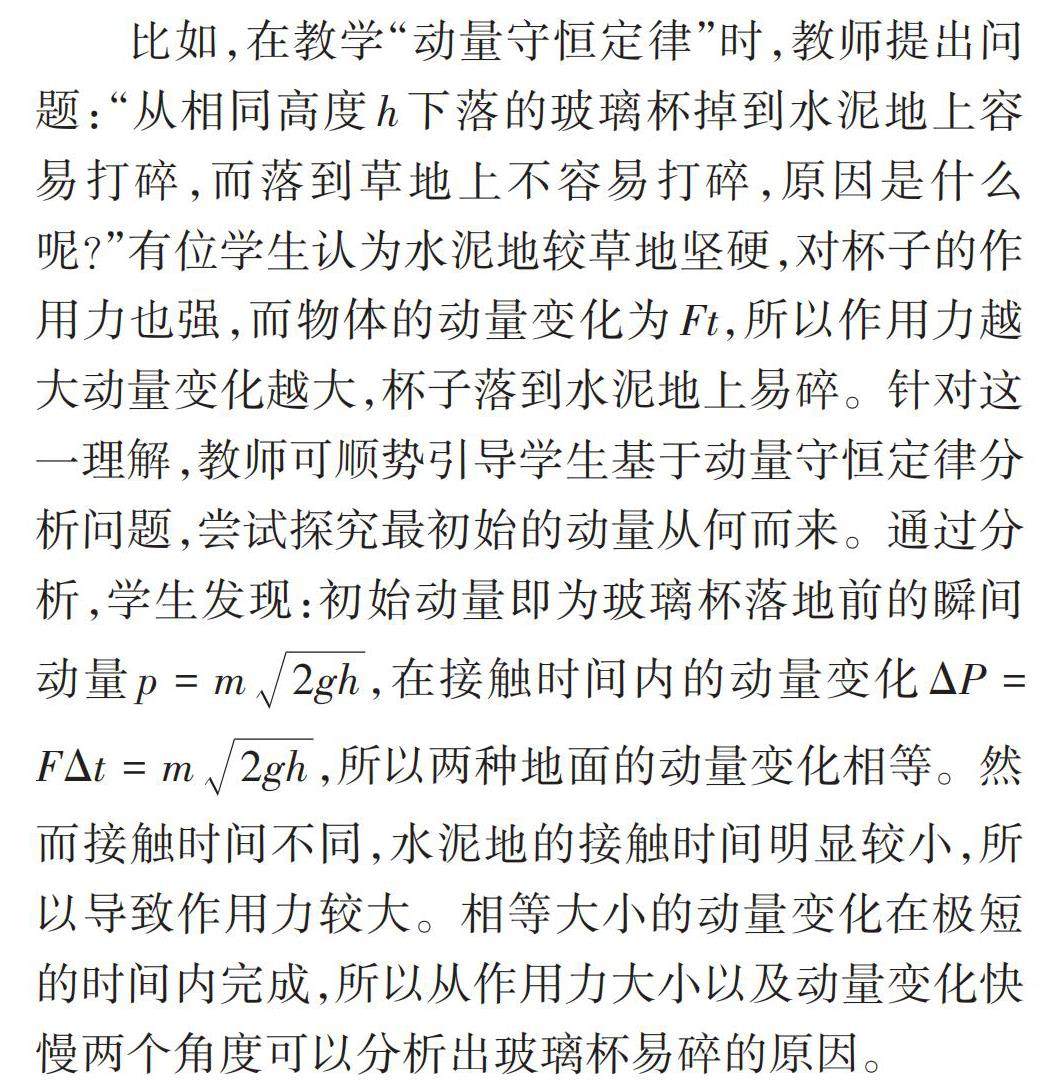 [摘 要]新时代背景下学科核心素养的培养成为重中之重,课堂教学中生成性资源对培养学生的核心素养有着突出的作用。因此,在实际教学中,教师应因势利导开发物理课堂教学中的生成性资源,为物理教学服务。文章结合实际教学过程分析生成性资源在物理教学中的开发与应用。