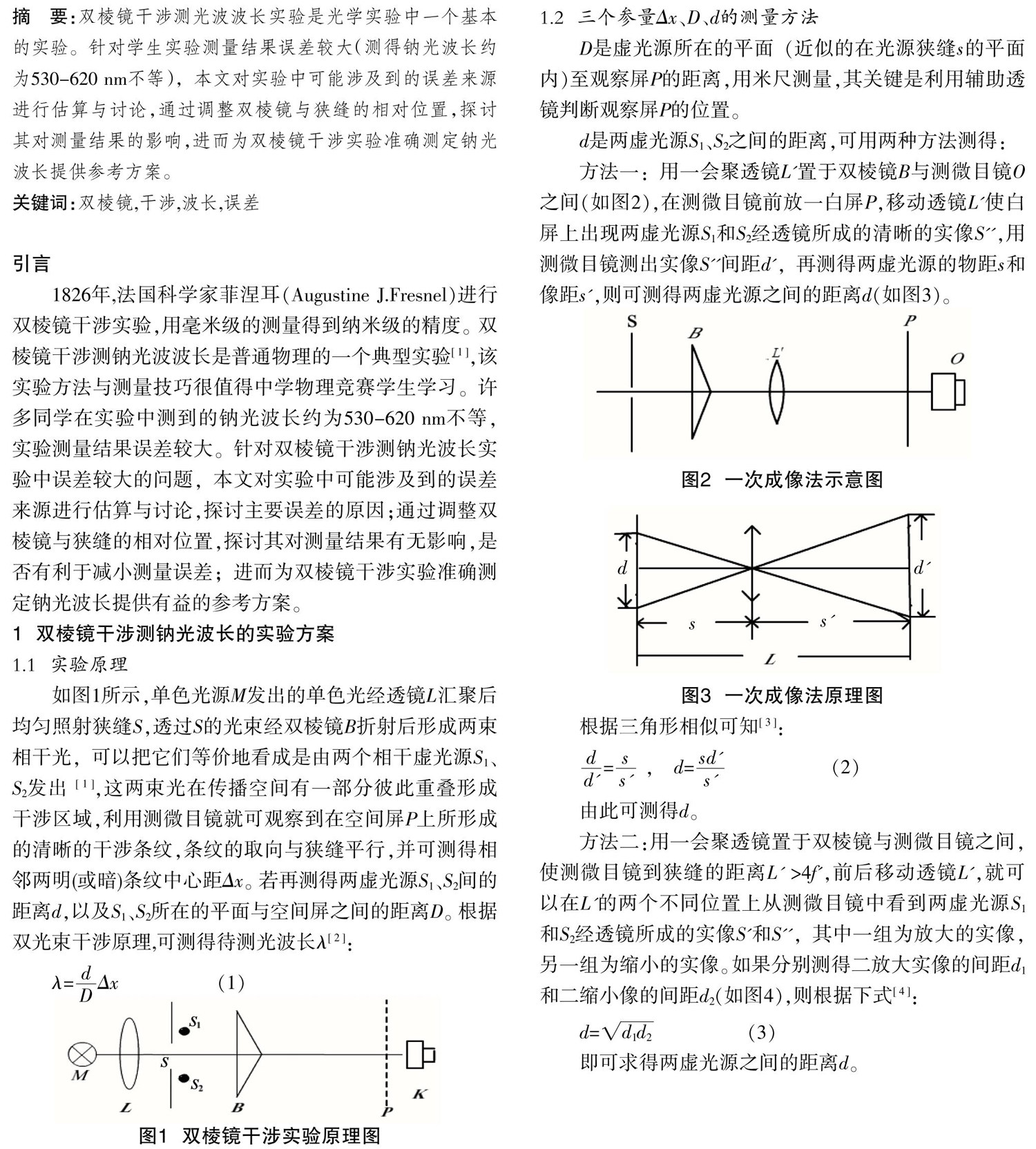 摘 要:双棱镜干涉测光波波长实验是光学实验中一个基本的实验。针对学生实验测量结果误差较大(测得钠光波长约为530-620 nm不等),本文对实验中可能涉及到的误差来源进行估算与讨论,通过调整双棱镜与狭缝的相对位置,探讨其对测量结果的影响,进而为双棱镜干涉实验准确测定钠光波长提供参考方案。(剩余5878字)