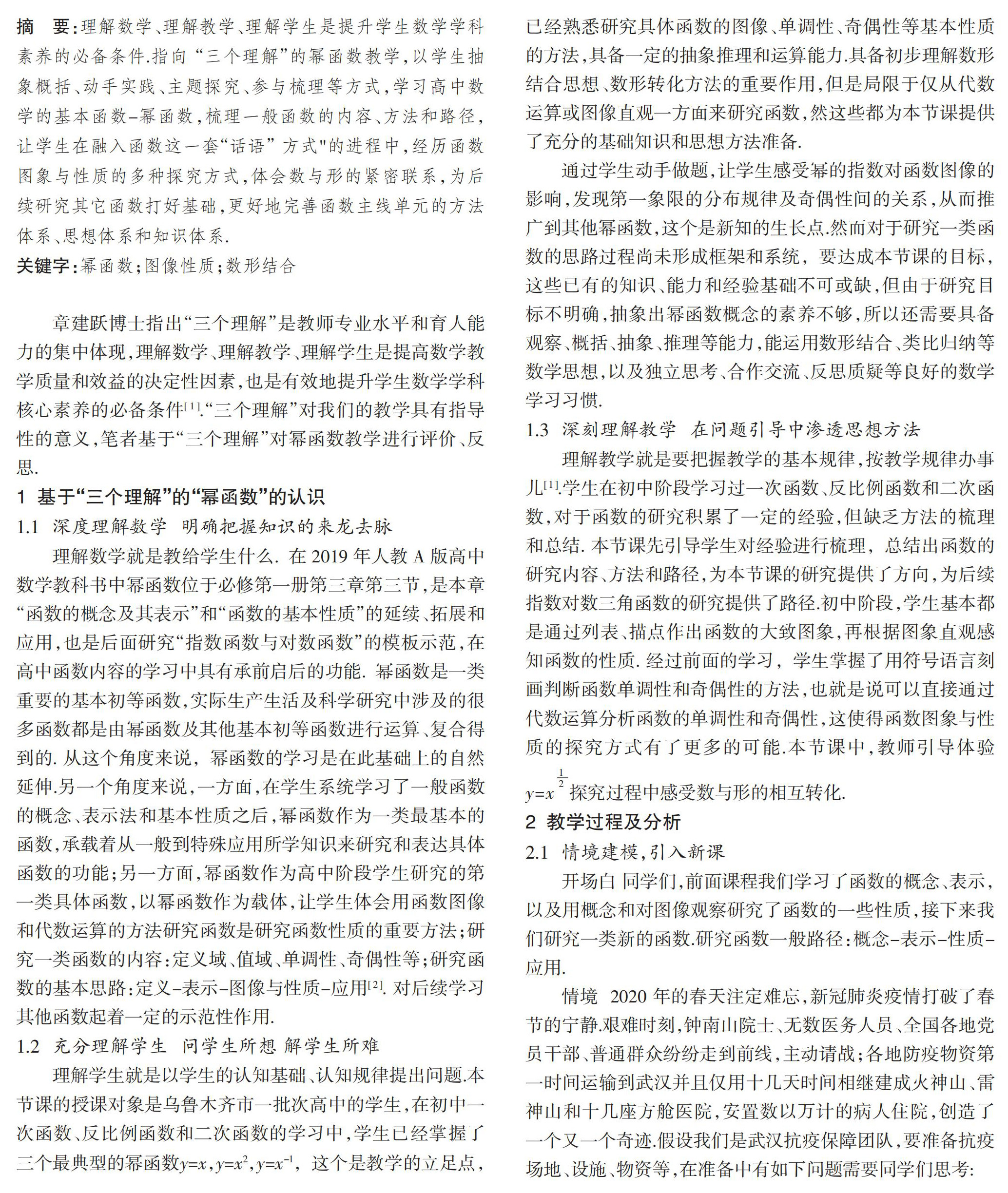 基于“三个理解”的幂函数教学设计