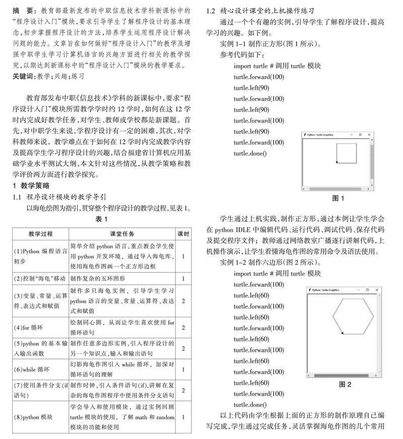 摘 要:教育部最新发布的中职信息技术学科新课标中的“程序设计入门”模块,要求引导学生了解程序设计的基本理念,初步掌握程序设计的方法,培养学生运用程序设计解决问题的能力。文章旨在如何做好“程序设计入门”的教学及增强中职学生学习计算机语言的兴趣方面进行相关的教学探究,以期达到新课标中的“程序设计入门”模块的教学要求。(剩余4946字)
