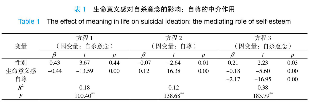 听障大学生生命意义感对自杀意念的影响:自尊的中介作用