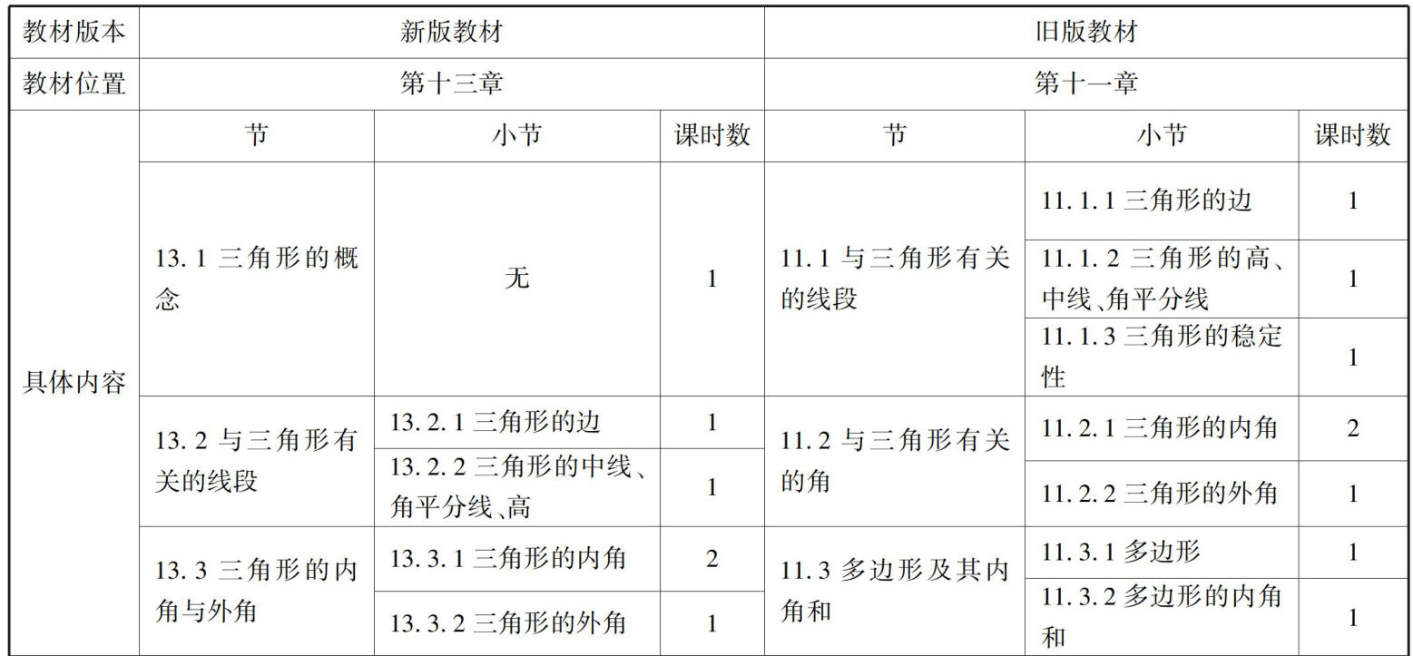 人教版新旧教材三角形内容的对比研究