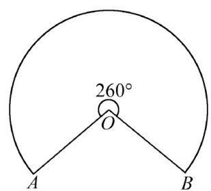 如图1,扇形OAB的圆心角为 260∘ ,点 P 为其内部 一点,则 ∠APB 的取值范围是