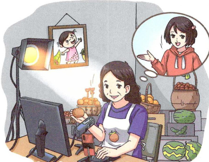 一天晚上,灯光柔和。墙上挂着我小时候的画作,妈妈精神饱满地进行着网络直播,墙角有序地放着将被售卖的特色农产品。从做传统的农贸市场摊主到做网络带货主播,妈妈的这条路走得并不容易。但她咬牙坚持,带着满满的热情和诚意,将家乡的特色农产品,通过网络直播的方式销售到了千家万户