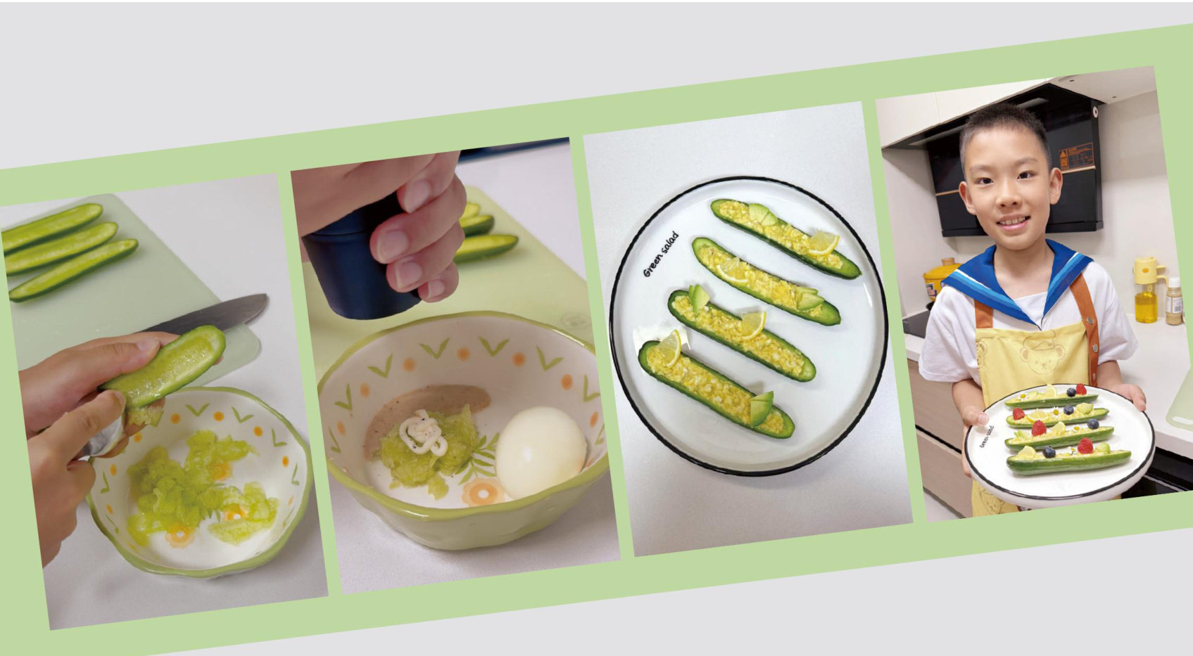 准备食材。我先把鸡蛋放入锅中,加入适量凉水,再开火煮。趁着煮鸡蛋的工夫,我把黄瓜拿出来洗净,竖着对半切开,接着用小勺子把瓜囊挖出来。这时候的黄瓜就像一条翠绿的小船,可爱极了。(剩余349字)