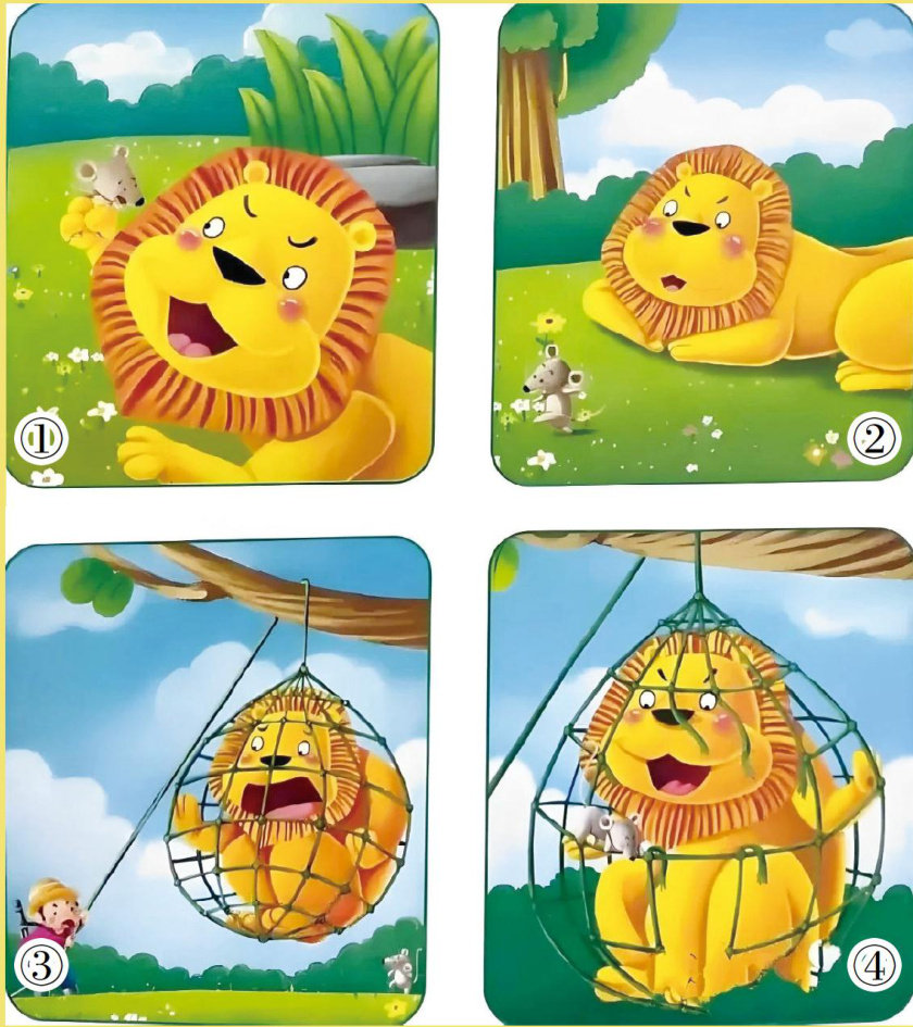 起因:小老鼠遇到了大狮子,它觉得以后大狮子也许有需要它的时候,大狮子却不这样认为。
