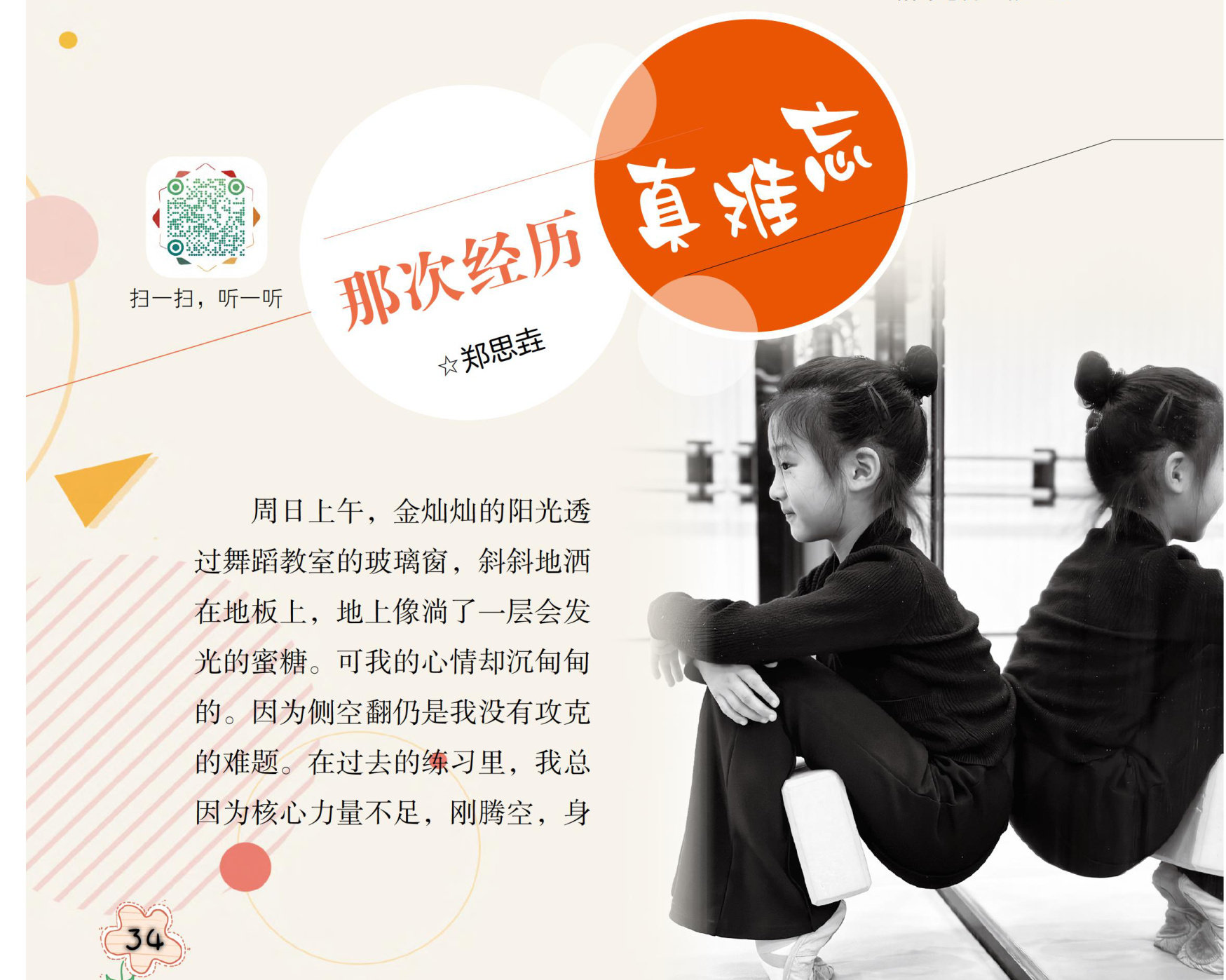 周日上午,金灿灿的阳光透过舞蹈教室的玻璃窗,斜斜地洒在地板上,地上像淌了一层会发光的蜜糖。可我的心情却沉甸甸的。因为侧空翻仍是我没有攻克的难题。在过去的练习里,我总因为核心力量不足,刚腾空,身体就失去平衡,重重地摔在垫子上。