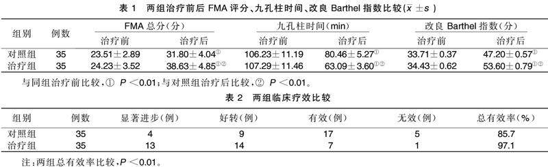 摘要 目的:观察低频重复经颅磁刺激(rTMS)联合针刺治疗脑卒中后上肢功能障碍的临床疗效。方法:将70例脑卒中后上肢功能障碍病人按随机数字表法分为治疗组和对照组,各35例。对照组采用针刺治疗,治疗组在对照组基础上联合低频rTMS治疗,每周治疗6次,共治疗3周。比较两组治疗前后Fugl-Meyer上肢运动功能评分量表(FMA)、九孔柱时间、改良Barthel指数评分变化。(剩余6933字)