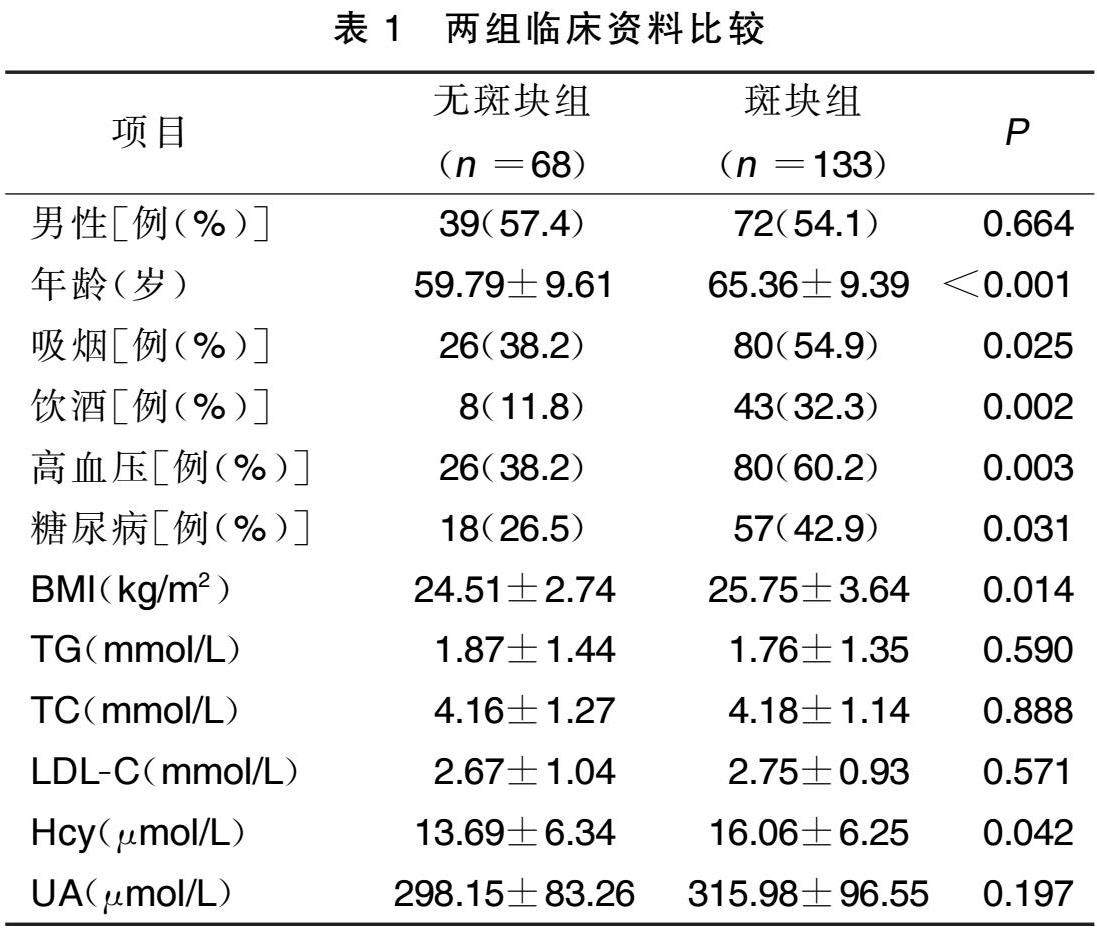 缺血性脑血管病病人体质指数与颈动脉斑块的关系探讨