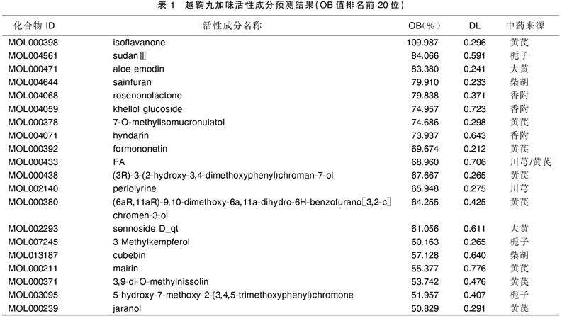 基于网络药理学及分子对接技术探讨越鞠丸加味治疗高脂血症、2型糖尿病、抑郁症“异病同治”的分子机制