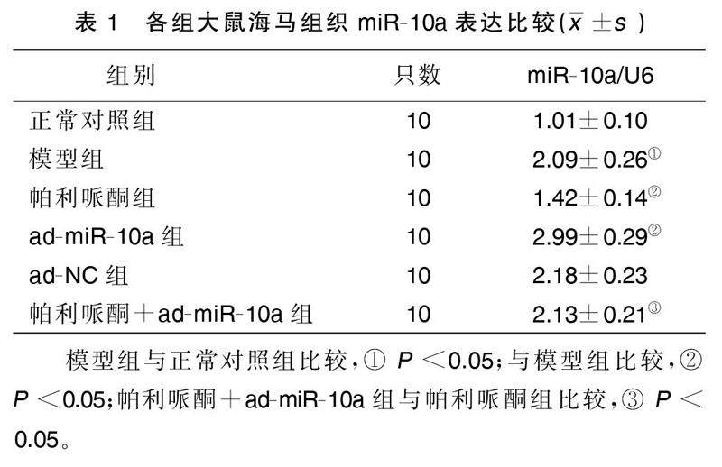 帕利哌酮调控miR-10a/BDNF通路对卒中后抑郁大鼠的影响