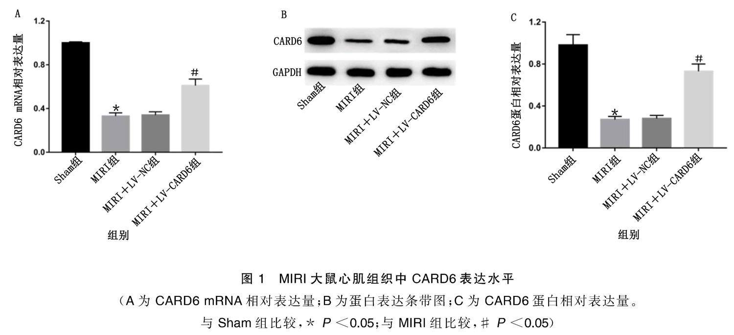 摘要 目的: 探讨胱天蛋白酶募集域蛋白6(CARD6)对心肌缺血再灌注损伤(MIRI)中炎症反应和细胞凋亡的影响,并分析其相关分子机制。 方法: 将60只SD大鼠随机分为假手术组(Sham组)、模型组(MIRI组)、MIRI+空载慢病毒(LV-NC)组、MIRI+CARD6过表达慢病毒组(MIRI+LV-CARD6组),每组15只。(剩余15745字)