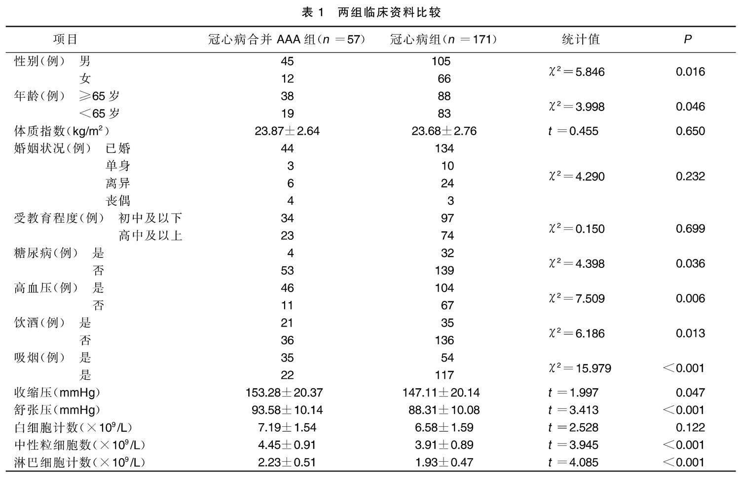 50岁以上冠心病合并腹主动脉瘤危险因素分析 及预测模型的建立