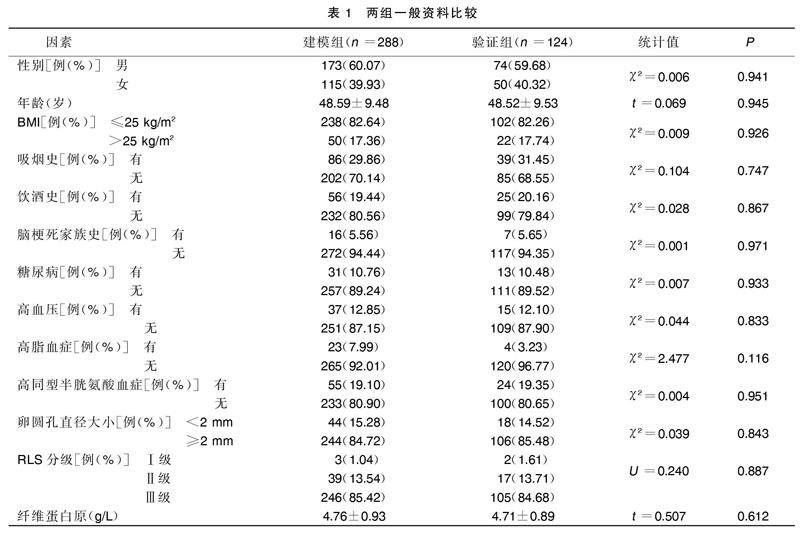 摘要目的:探讨卵圆孔未闭(PFO)病人并发心源性栓塞(CE)的影响因素,构建并验证预测模型。方法:回顾性分析2020年1月—2022年6月我院收治的412例PFO病人的临床资料,按照7∶3的比例分为建模组(288例)与验证组(124例)。在建模组中,依据病人就诊时是否并发CE分为并发组(71例)与未并发组(217例),采用Logistic回归分析法筛选PFO病人并发CE的独立危险因素,并据此构建PFO病人并发CE的风险预测列线图模型。(剩余6371字)