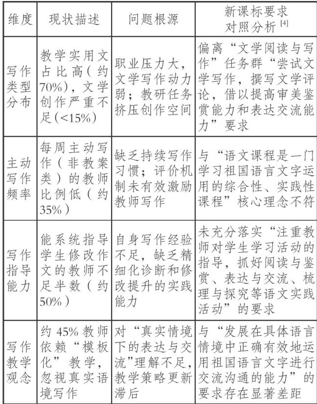 叶圣陶在《“教师下水”》一文中曾指出:“…多数老师就只教学作文,而自己不作文了。”[1]言辞间不仅暗含惋惜,更直指语文教师专业实践中的一个关键缺失一一写作能力的运用。作为“教语文”的专业人员,具备并运用写作能力,是语文教师区别于其他学科教师的特质,也是其有效设计并开展教学、实现育人目标的基础。语文教师的写作能力对语文教学效能的影响,可谓举足轻重,亟待深入探讨。(剩余6588字)