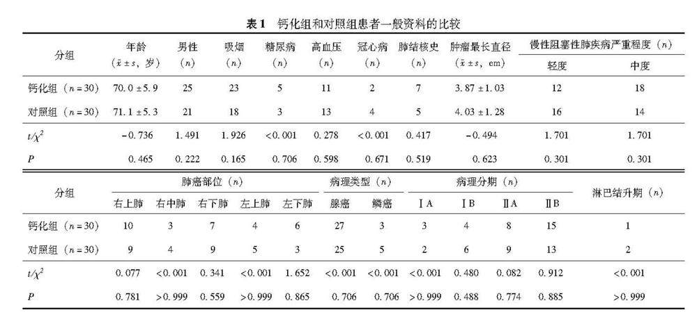 钙化淋巴结对合并慢性阻塞性肺疾病的肺癌患者胸腔镜肺叶切除术的影响