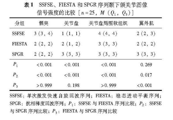 摘要:目的 比较3种磁共振高清类动态检查方法评价颞下颌关节盘及髁突运动情况的图像质量。方法 对25例疑诊颞下颌关节功能紊乱患者进行单次激发快速自旋回波序列(SSFSE)、稳态进动平衡序列(FIESTA)、扰相梯度回波序列(SPGR)的斜矢状位检查。由2名放射科诊断医师采用双盲法分别对图像进行主客观评价,主观评价内容包括髁突、关节盘、关节盘周围软组织、翼外肌的信号强度,关节盘与髁突、周围软组织间的对比度,髁突、关节盘及其运动的显示情况;客观评价指标包括图像的信号强度、信噪比(SNR)及对比噪声比(CNR),并对3种序列图像质量的主客观指标进行比较。(剩余14841字)