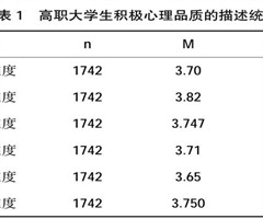 [摘 要] 目的:通过问卷调查,分析高职大学生积极心理品质的现状,为更好地开展高职大学生积极心理品质培养工作提供依据。方法:通过整群取样的方法,采用《中国大学生积极心理品质量表》,对山西省太原市某高职院校1742名学生...