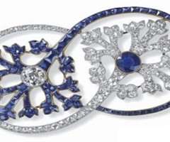 卡地亚胸针,黄金、白金、钻石和蓝宝石 宝诗龙 La Forêt 胸针,Lucien Hirtz,1910 年,绿金和珐琅 Sphinx 胸针,René Lalique,约1893 年,黄金、珐琅和钻石 吊坠,L. Fal...