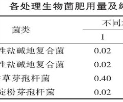 摘要:为了探究不同生物菌肥对小麦生长、土壤肥力及微生物数量的影响,采用盆栽试验,以小麦(Triticum aestivum L.)为试验对象,不施肥为对照(CK),设置水溶性盐碱地复合菌(A)、不溶性盐碱地复合菌(B)、枯草芽孢杆菌(C)、...