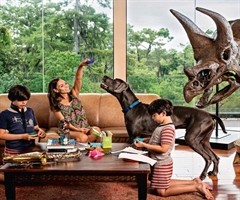 美国路易斯安那州一位富豪的客厅里赫然陈列着一具三角龙化石。 | 恐龙卖家 | 亚历山大·吉凯洛的办公地点位于巴黎黄金三角区的博埃西街上,走近一看,与其说是工作室,不如说是杂物间。玻璃展示柜和地上摆满了各类物件,有陨石,有非洲面具,...