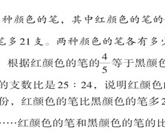 21÷(25-24)=21(支) 21×25=525(支) 21×24=504(支) 答:红颜色的笔有525支,黑颜色的笔有504支。...
