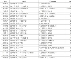 第二十届中国中学生作文大赛辽宁赛区获奖名单