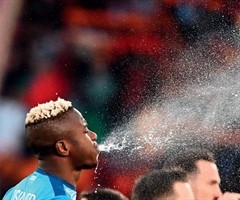 前那不勒斯前锋奥斯梅恩喷水。 足球运动员为什么总是吐口水?被问到这个问题时,很多球员会陷入沉思。这里所说的吐口水,不是那种对着对手吐口水的行为,而是在足球场上司空见惯的、不经意间就发生的吐口水行为。英格兰莱顿东方队的边锋乔丹·格雷...